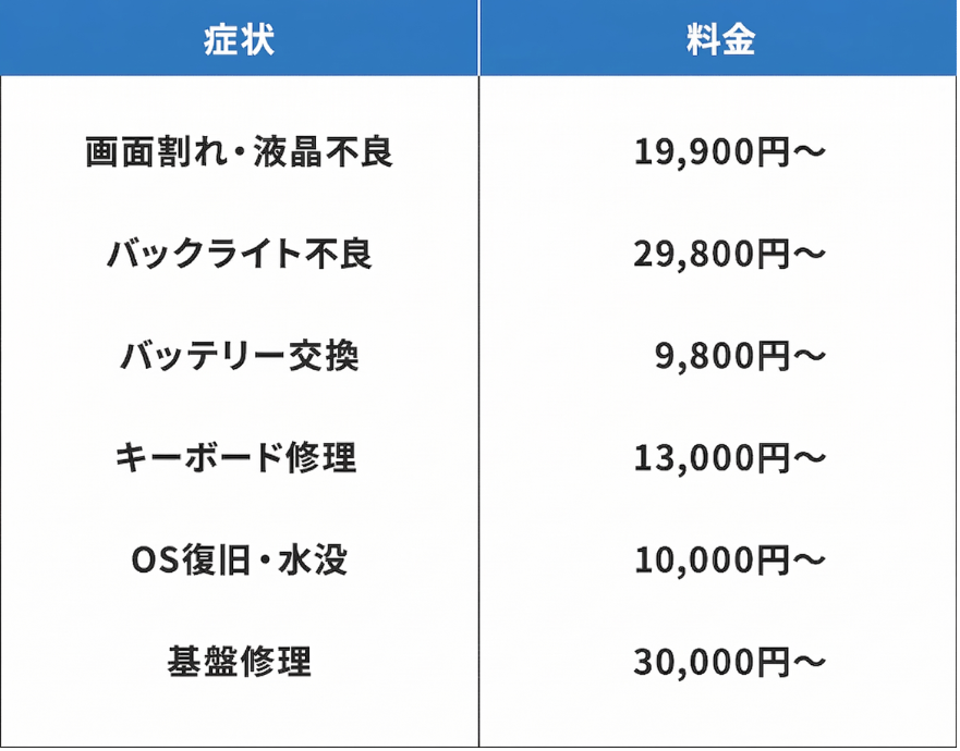 MacBook Pro バックライト不良 店頭修理 Appleの見積もりが高額だったので一度相談してみたところ、こちらでは即日対応&予算内で修理してもらえました。 使用頻度の高いMacBook Proだからこそ、信頼できる修理店にお願いして正解でした。会社の同僚にも勧めたいです。