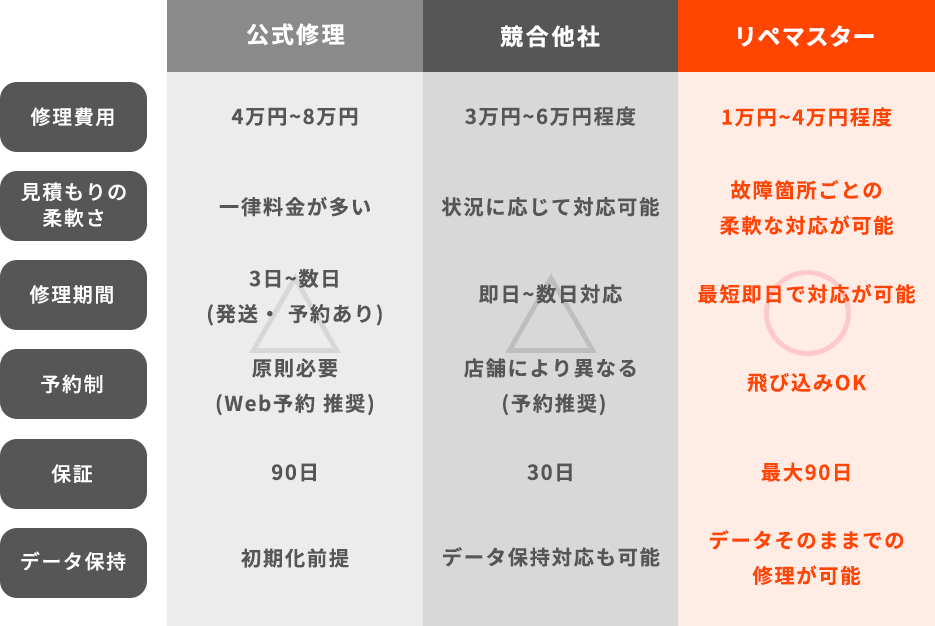 学生で予算に限りがあったのですが、相談にのっていただき、自分に合った修理プランを提案してもらえました。